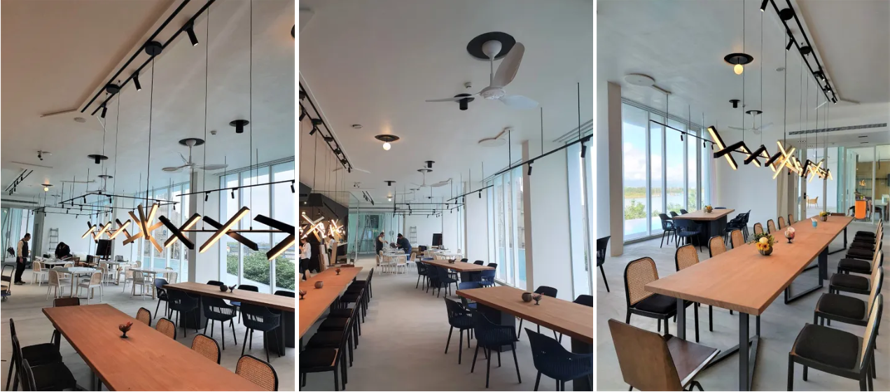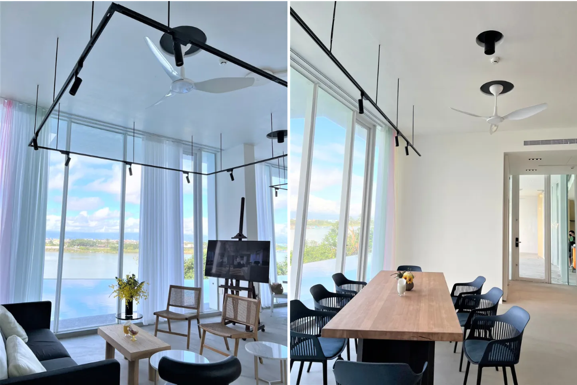 業主在一樓餐廳配置8支當代經典吊扇Modern HVLS Fan