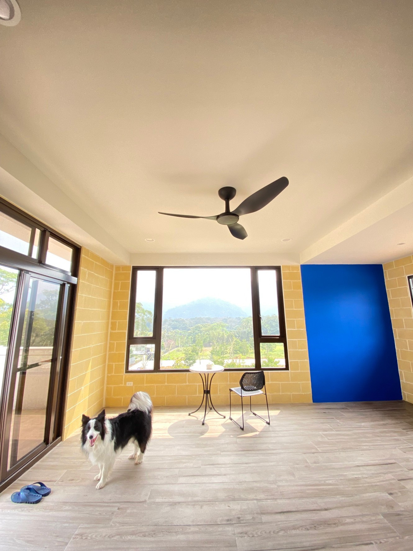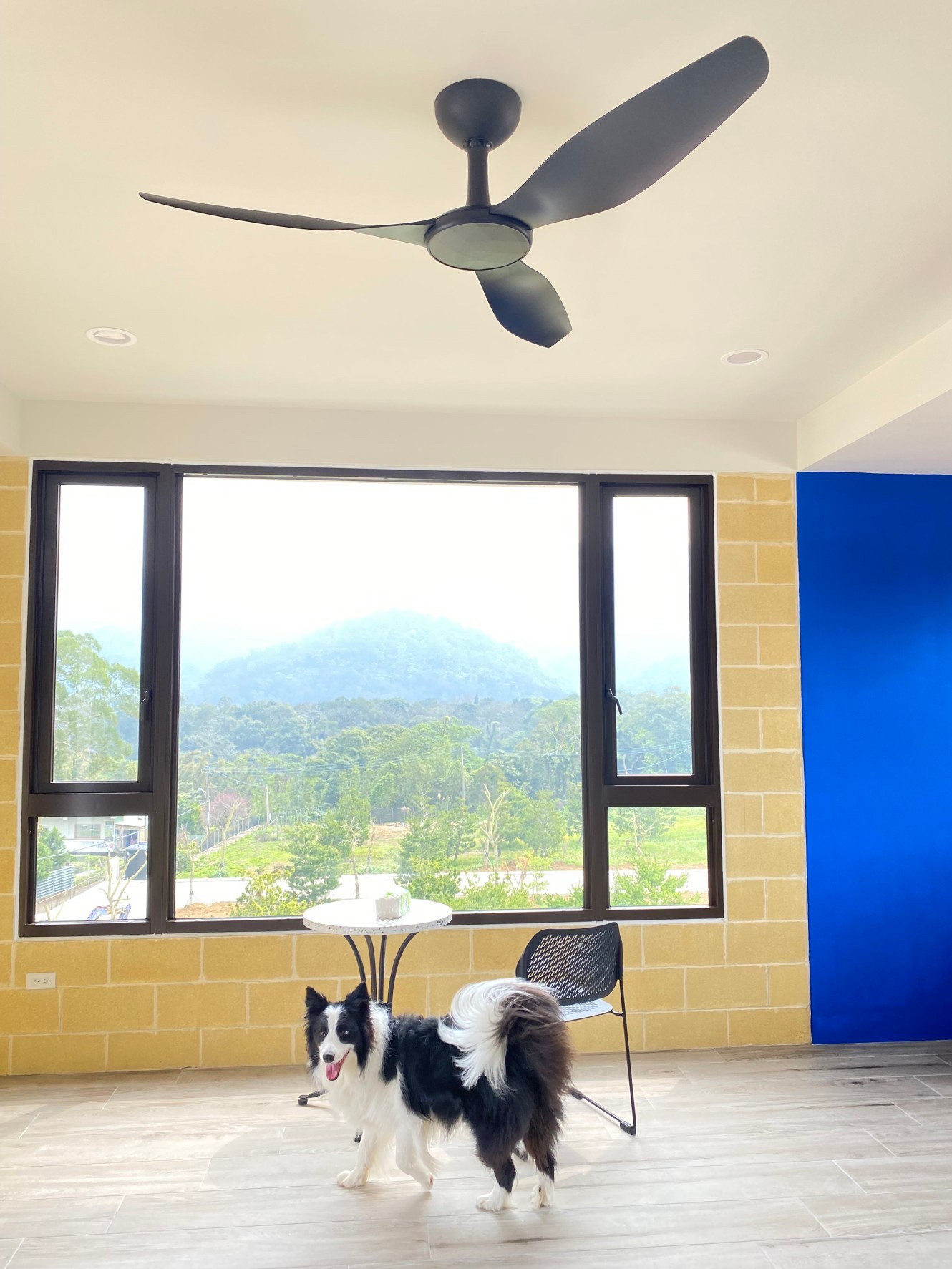 與業主一起生活的邊境牧羊犬,感受到Modern HVLS Fan 當代經典吊扇的舒適風感,