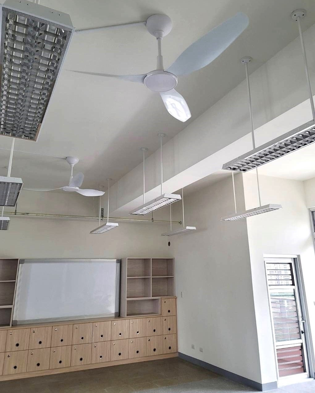 因此,校方在全新校品規劃時積極以節能為目標,透過發明家好空氣專業建議,選擇Modern HVLS Fan 當代經典吊扇