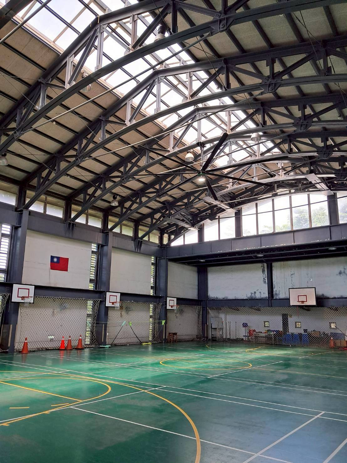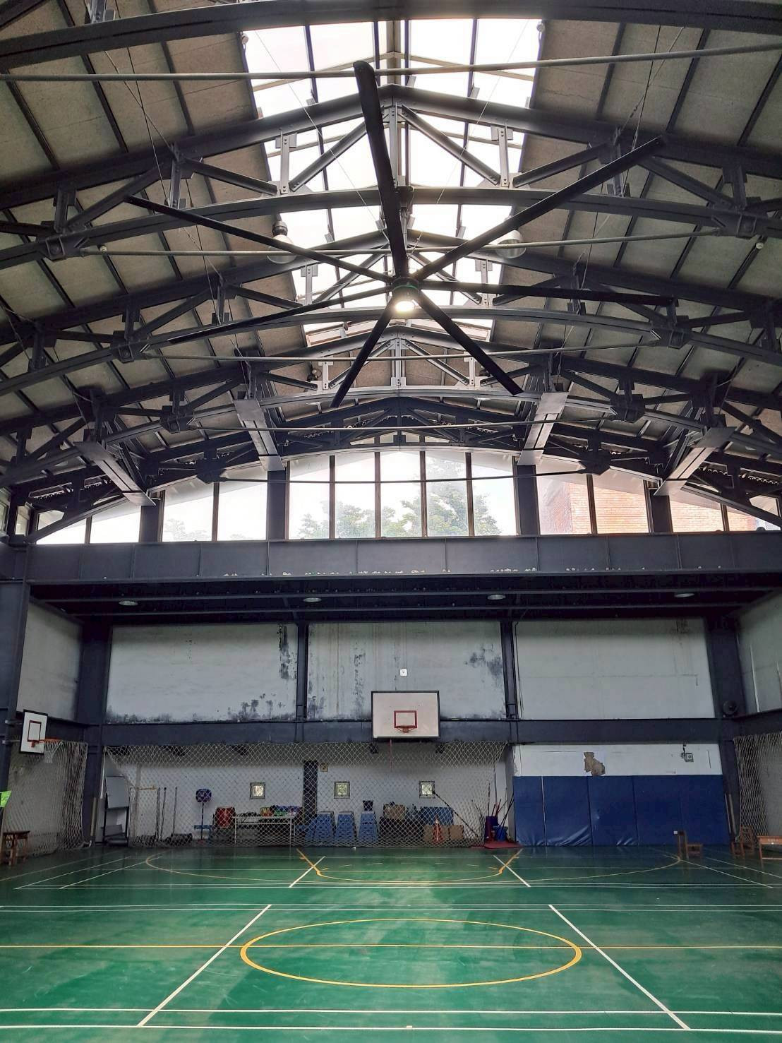 新竹某附小體育館,過去因空間密閉、通風不良,學生在體育課時常因悶熱而感到不適。