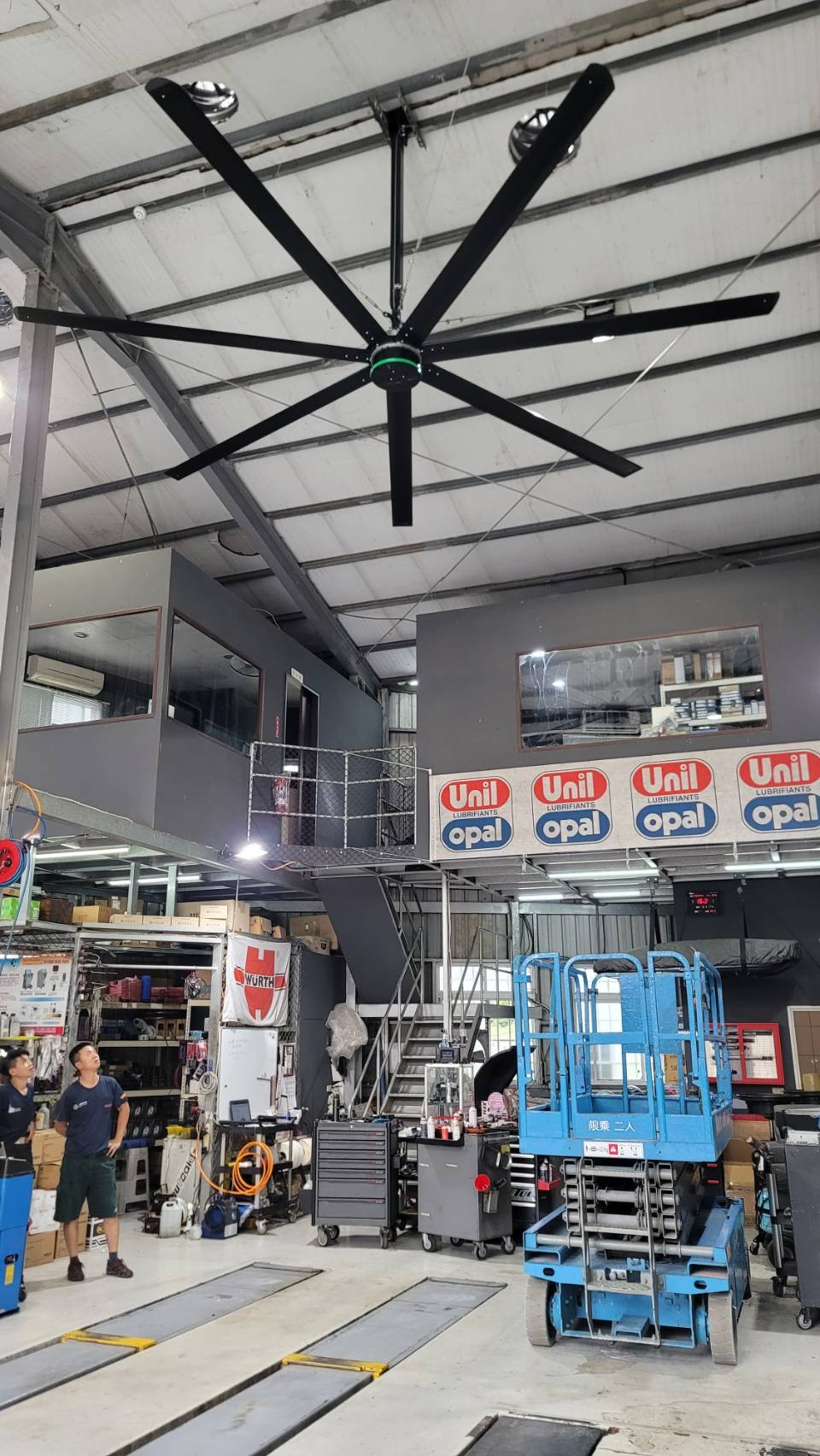 為了解決這一問題,在車廠安裝了Powerful Series 10_5M 節能工業吊扇後,不但迅速帶走了廠房內的熱氣,讓車廠工作區域擁有舒適的溫度。