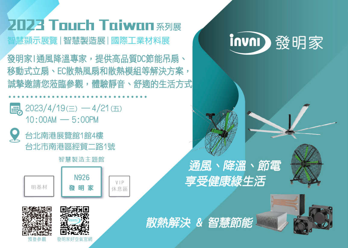 Latest News 最新消息 首頁 最新消息 最新消息 全部分類 最新消息 2023-04-11 最新消息 2023 Touch Taiwan智慧製造展 『2023 Touch Taiwan智慧製造展』 發明家誠摯邀請您親臨現場體驗及感受我們的產品及服務,敬請蒞臨參觀。 展位編號:N926 展覽名稱:2023 Touch Taiwan智慧製造展 展覽日期:2023/4/19(三) - 4/21(五) 開展時間:10:00 AM ~ 5:00 PM 展覽地點:台北南港展覽館一館4樓(台北市南港區經貿二路1號) 回上一頁