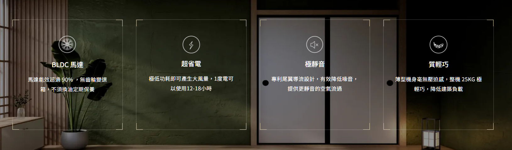 為了友善環境,建準全系列吊扇產品採用節能BLDC馬,搭配專利尾翼設計,可以讓吊扇用最少的電力產生最大的風流,為減緩日益嚴重的極端氣候盡一份心力,我們的關心從每一個產品設計開始。